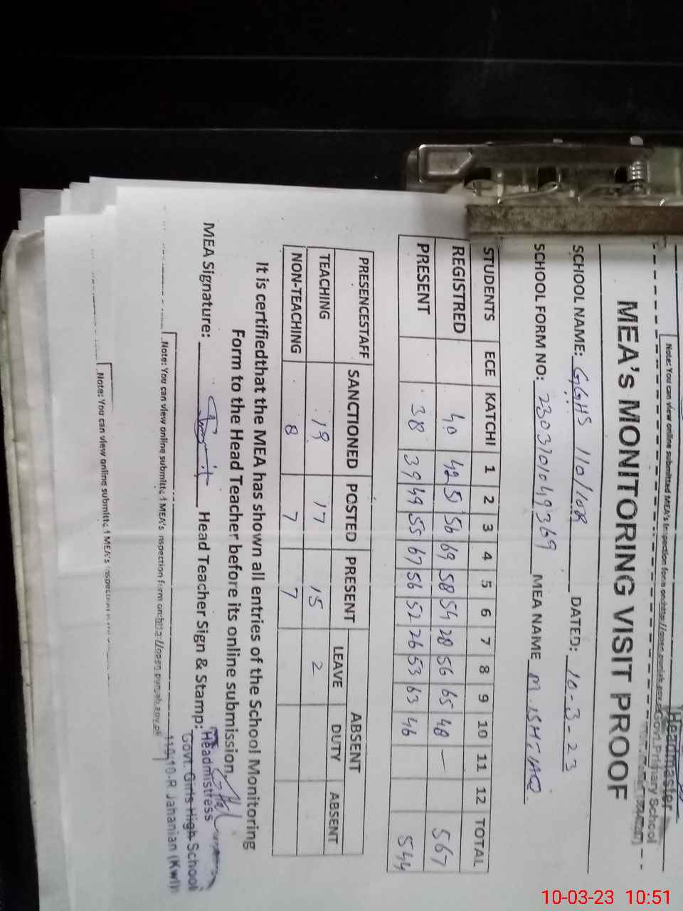 | Certified that this School was Inspected by the Undersigned MEA/DMO Today and the Information Stated Above is as Per Record. | |||||