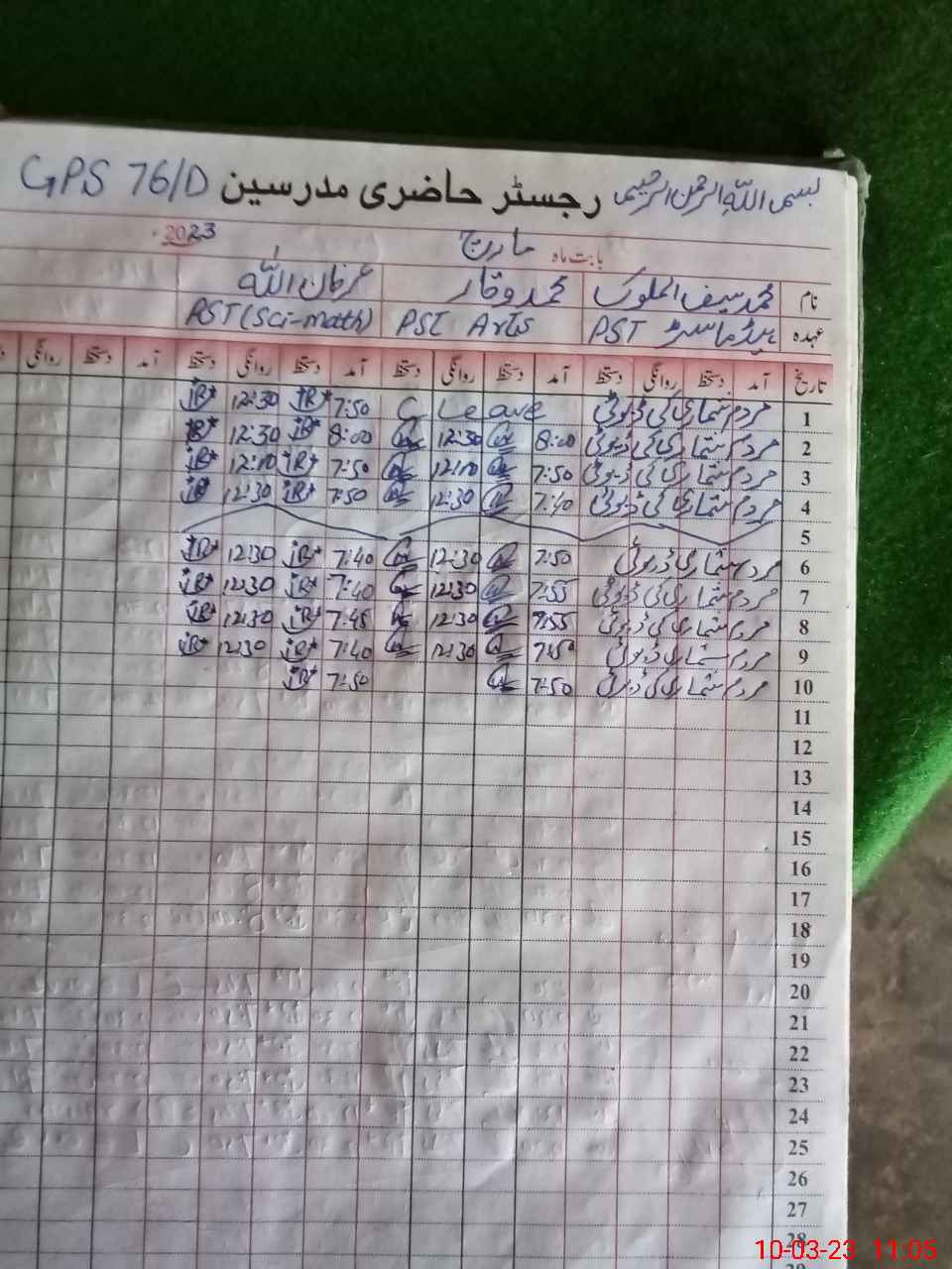 | Name: Mu**** Sa**** UlMa**** Designation: (School Headmaster's/Headmistress's) PST Phone/Cell Number: 03**** |