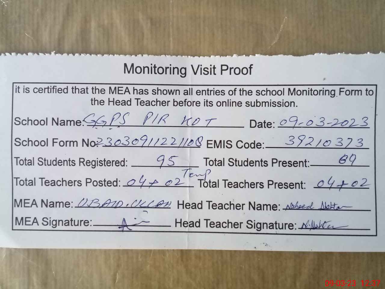 | EMIS Code: 39210373 | Name of School: GGPS MC NO. 3 PIR KOT PAKPATTAN | |||