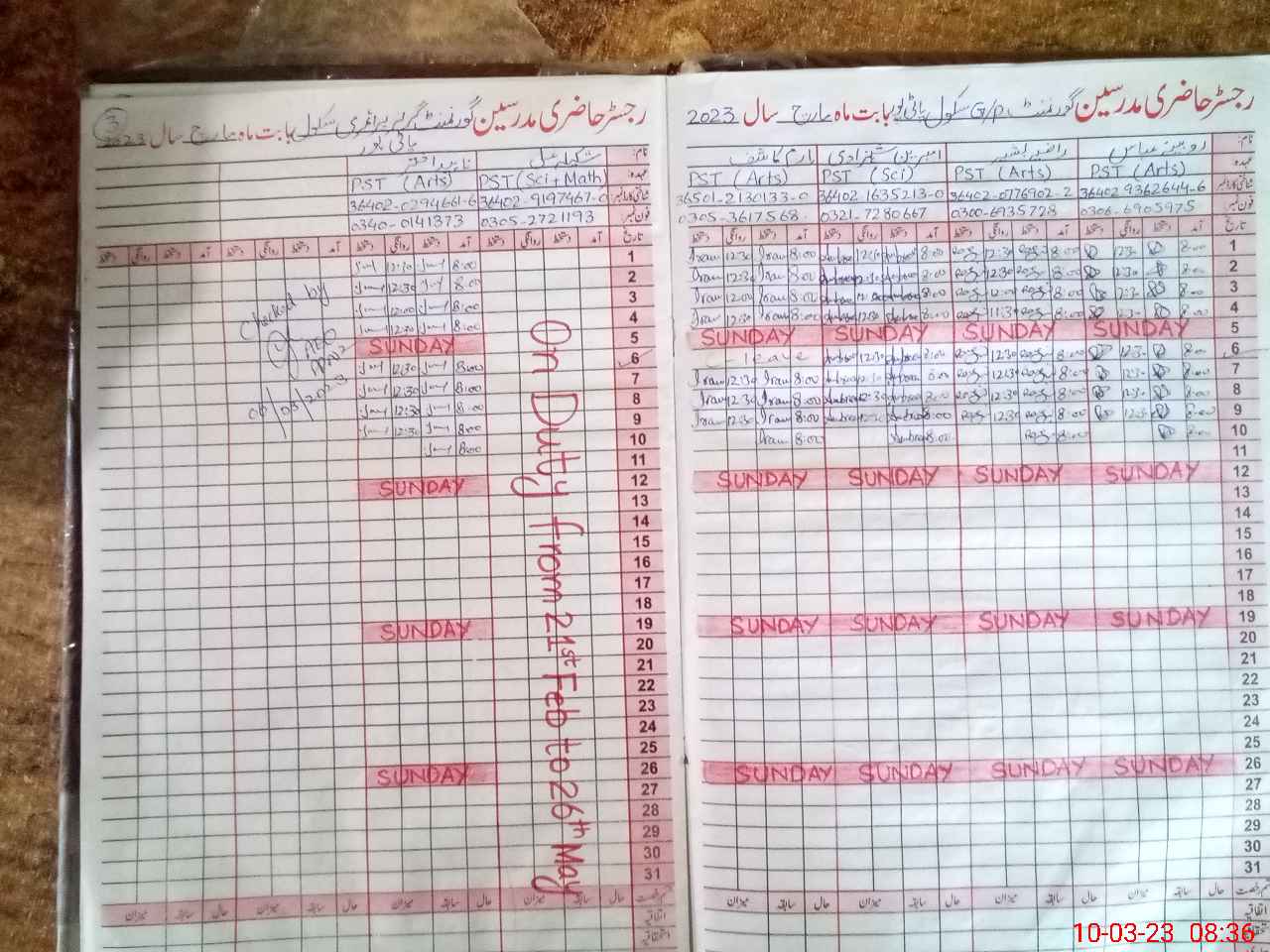 | Name: Ir**** Ka**** Designation: (School Headmaster's/Headmistress's) PST Phone/Cell Number: 03**** |