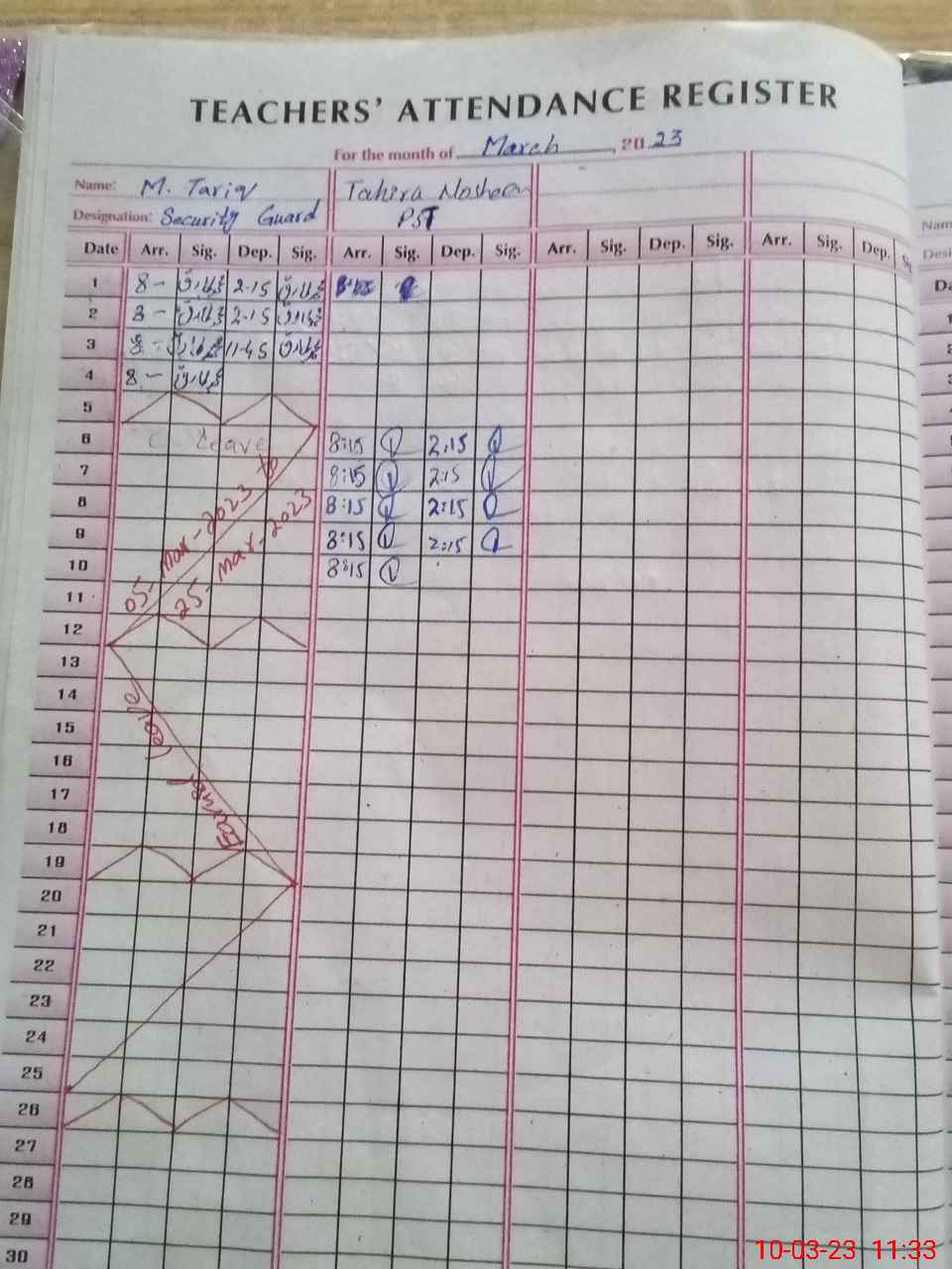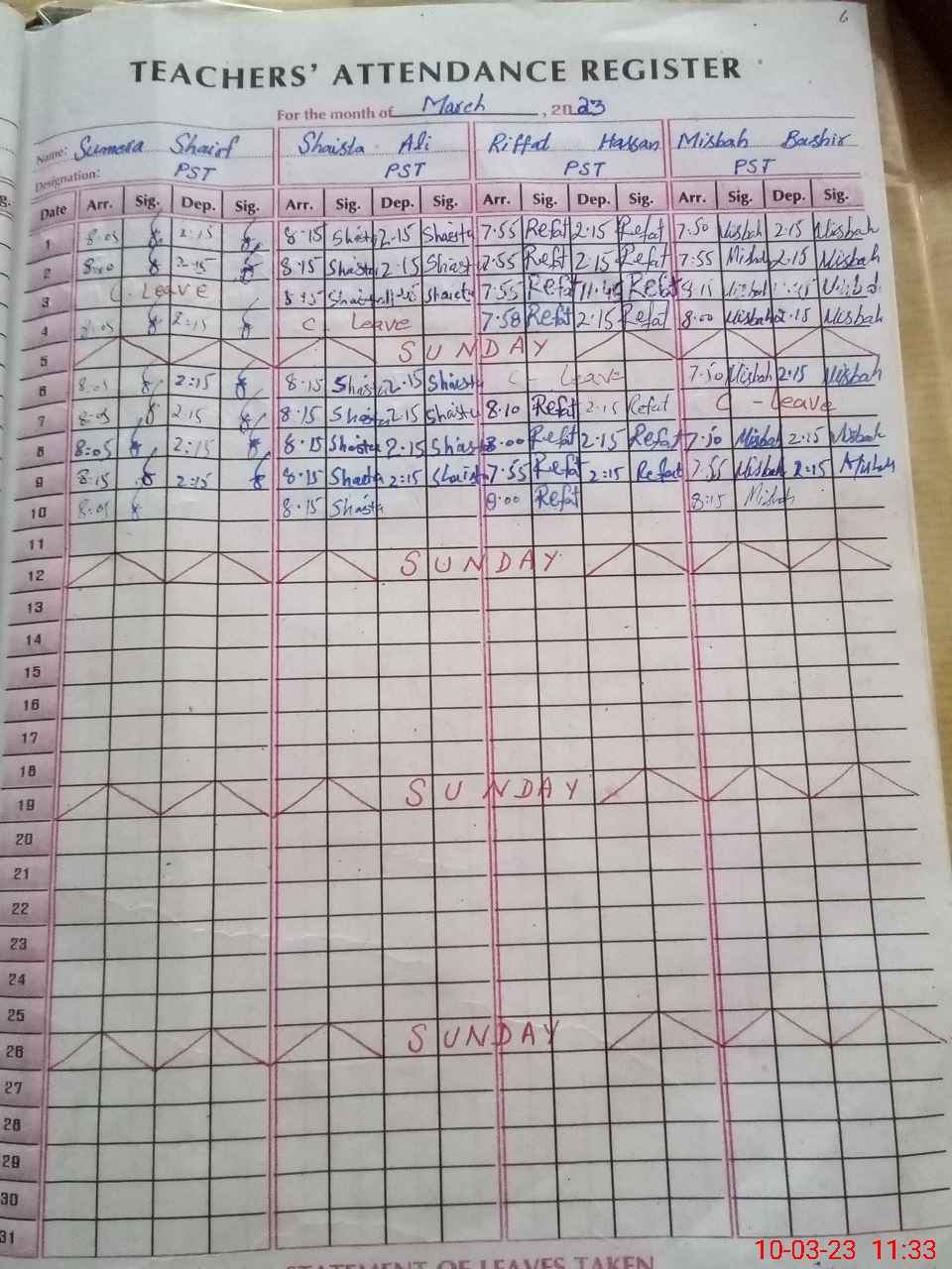 | Leave | Duty | Absent | Maternity | Medical | Ex- Pak |