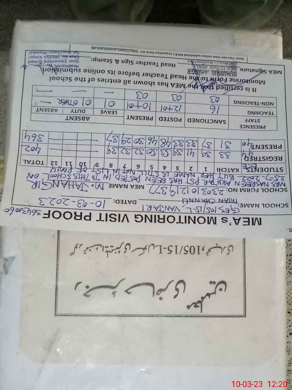 | Attendance Register | Head Teacher | MEA with School | Visit Proof |
