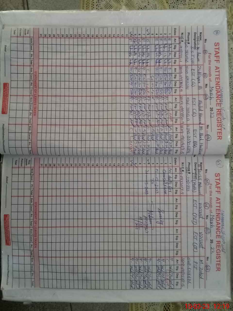 | Name: Ha**** Ka**** Designation: (School Headmaster's/Headmistress's) EST Math H/T Phone/Cell Number: 03**** |