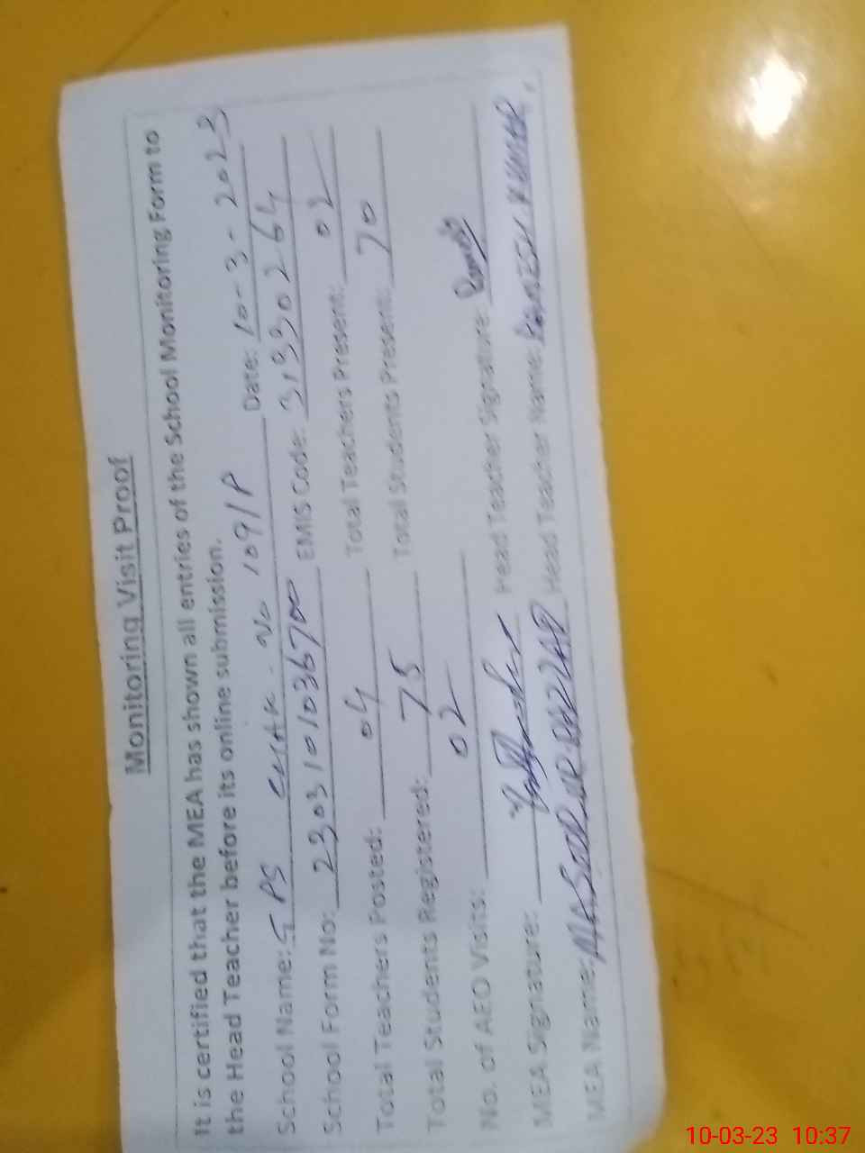 | Name: Mo**** Al**** Designation: (School Headmaster's/Headmistress's) PST Phone/Cell Number: 03**** |