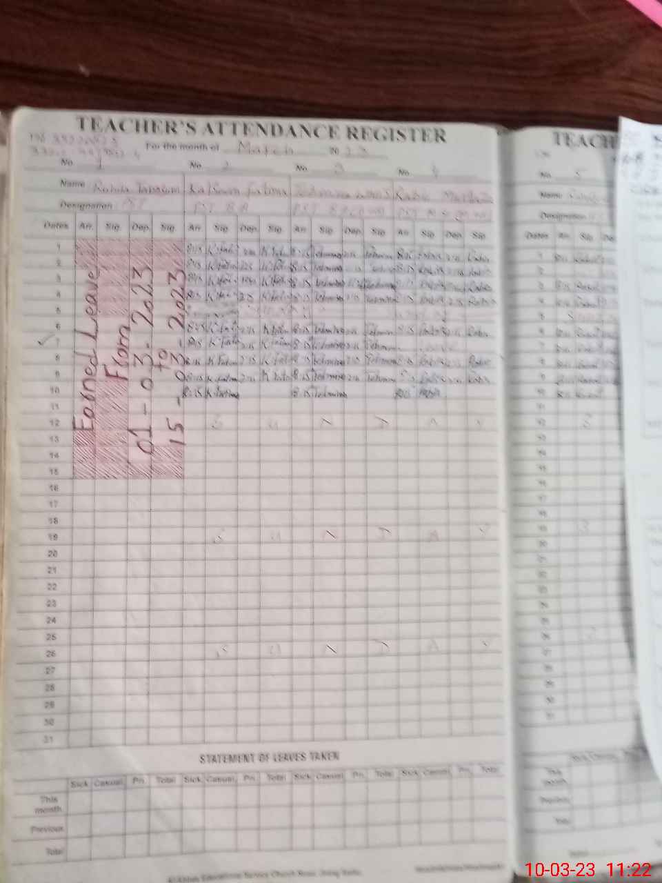| Leave | Duty | Absent | Maternity | Medical | Ex- Pak |