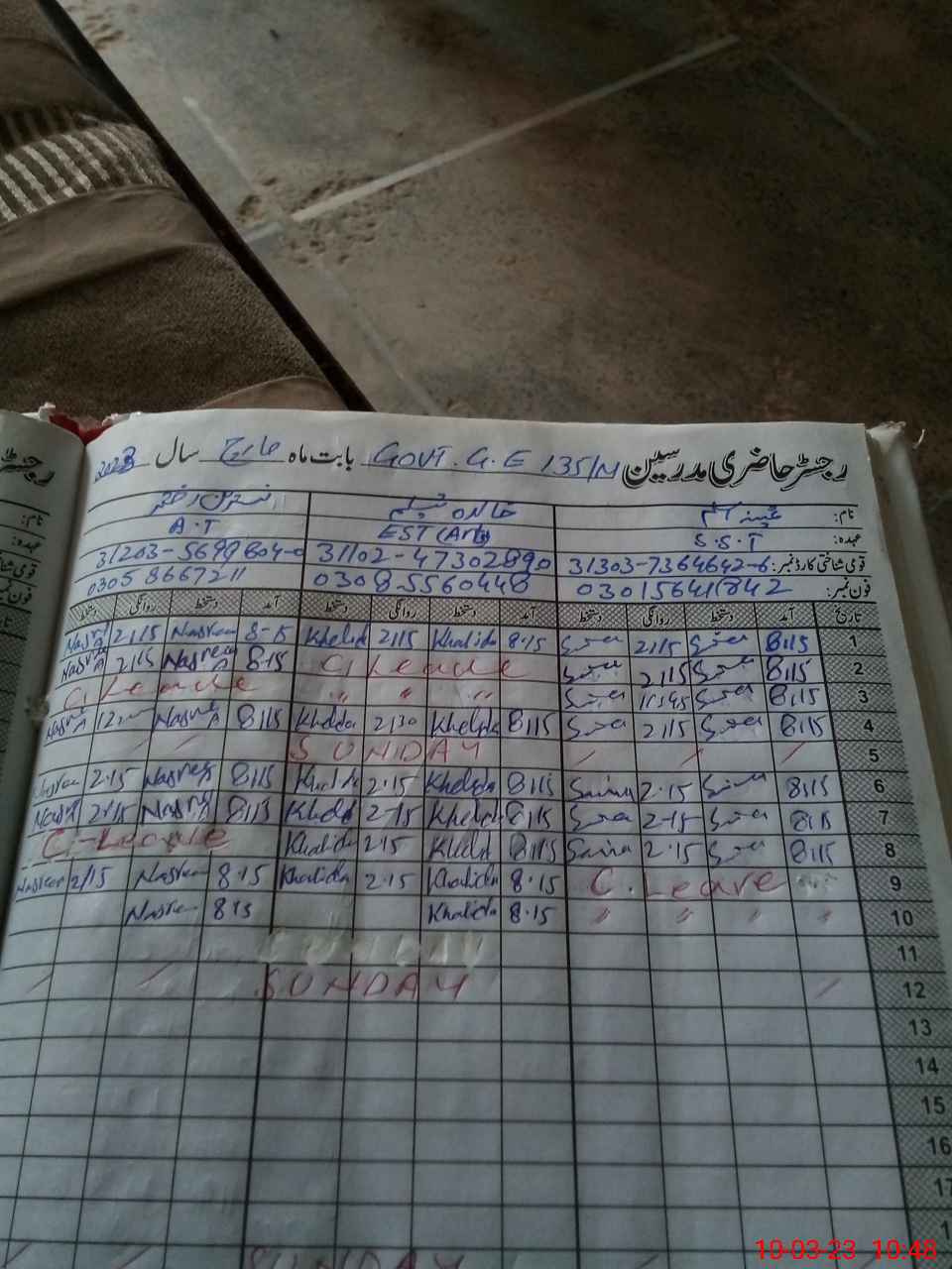| EMIS Code: 31120519 | Name of School: GGES CHAK NO. 135 MURAD | |||