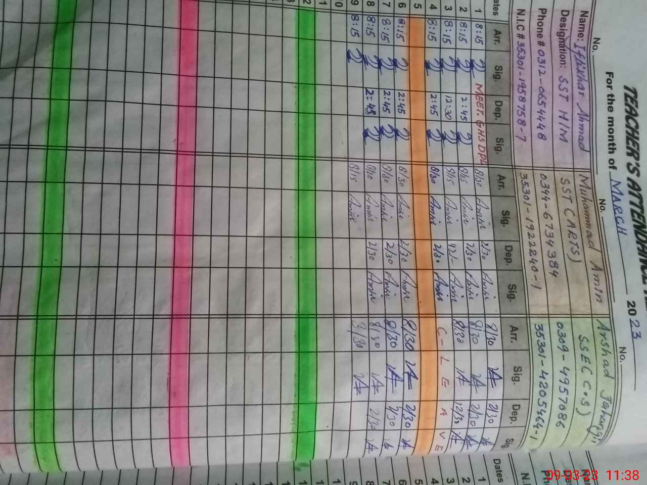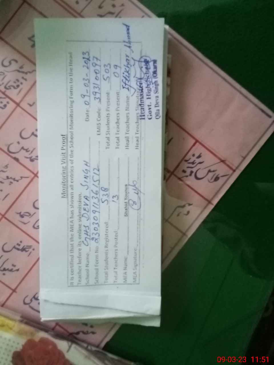 | Name: IF**** AH**** Designation: (School Headmaster's/Headmistress's) SST INCHARGE HM Phone/Cell Number: 03**** |