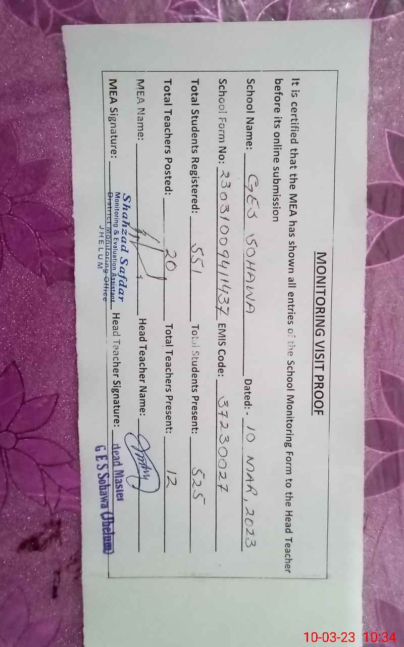 | District: JHELUM | Tehsil: SOHAWA | Markaz: SOHAWA - MALE | Level: Middle | |