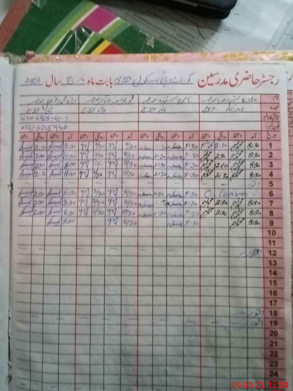 | Name: NA**** ASY**** Designation: (School Headmaster's/Headmistress's) EST I/C Phone/Cell Number: 03**** |