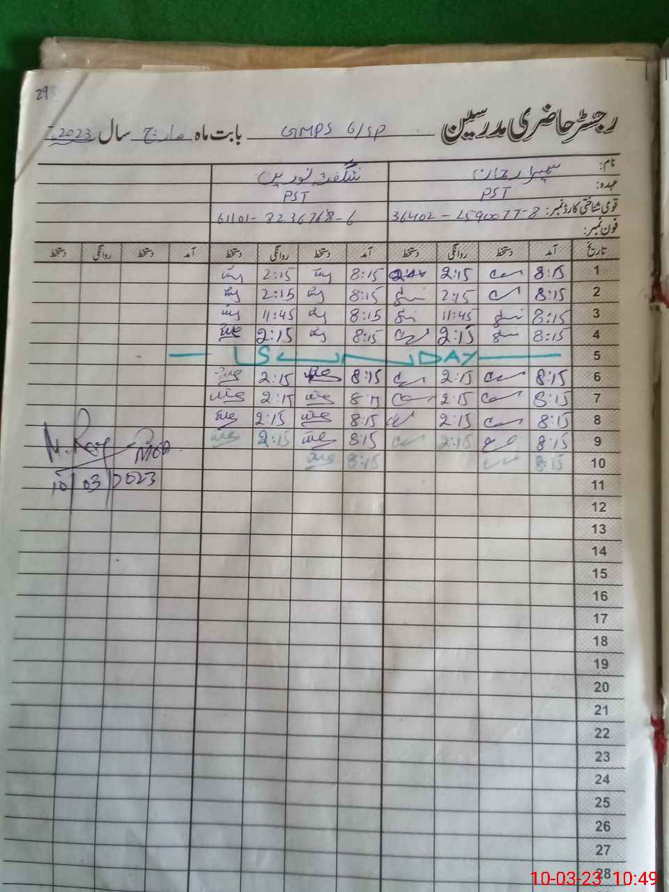 | Name: SH**** NO**** Designation: (School Headmaster's/Headmistress's) PST Phone/Cell Number: 03**** |