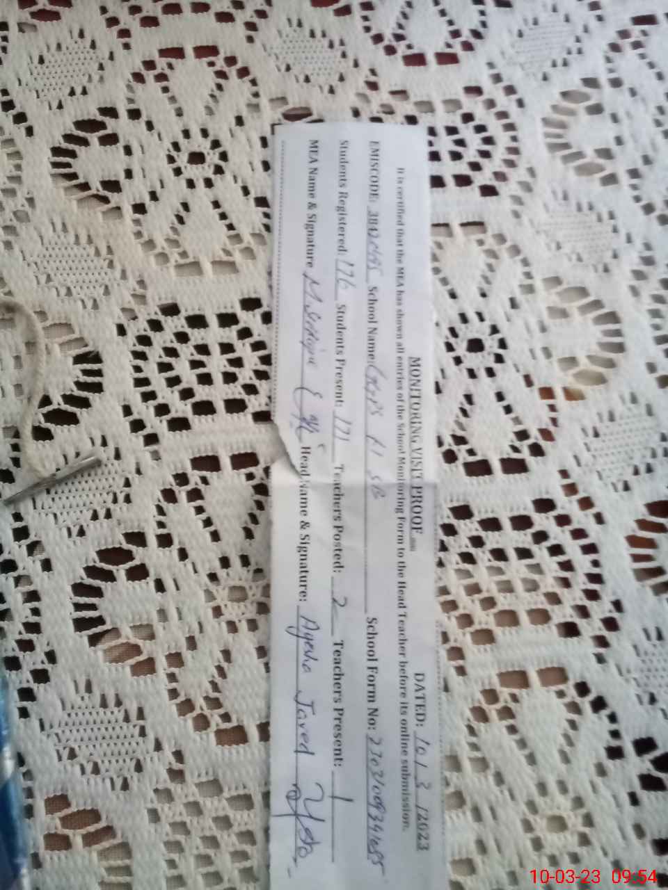 | Certified that this School was Inspected by the Undersigned MEA/DMO Today and the Information Stated Above is as Per Record. | |||||