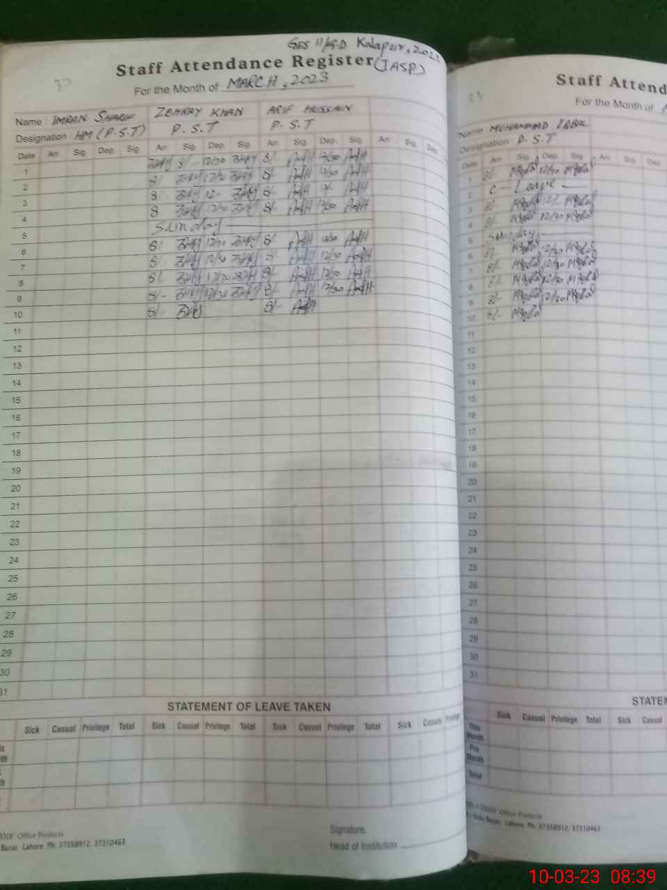 | Name: Im**** Sh**** Designation: (School Headmaster's/Headmistress's) PTC/JV Phone/Cell Number: 03**** |