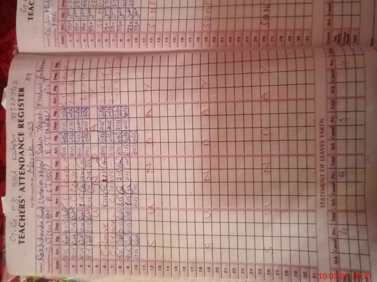 | 35**** | Fi**** Sa**** | ESE | Contract | 0 | 0 | 0 | 0 | 0 | 0 | 0 | 0 | 0 | Absent (Un-Authorized) |