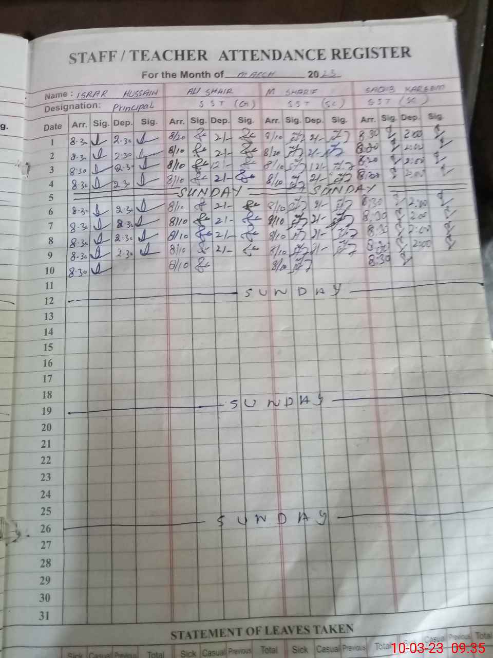 | Name: IS**** HU**** Designation: (School Headmaster's/Headmistress's) PRINCIPAL Phone/Cell Number: 03**** |