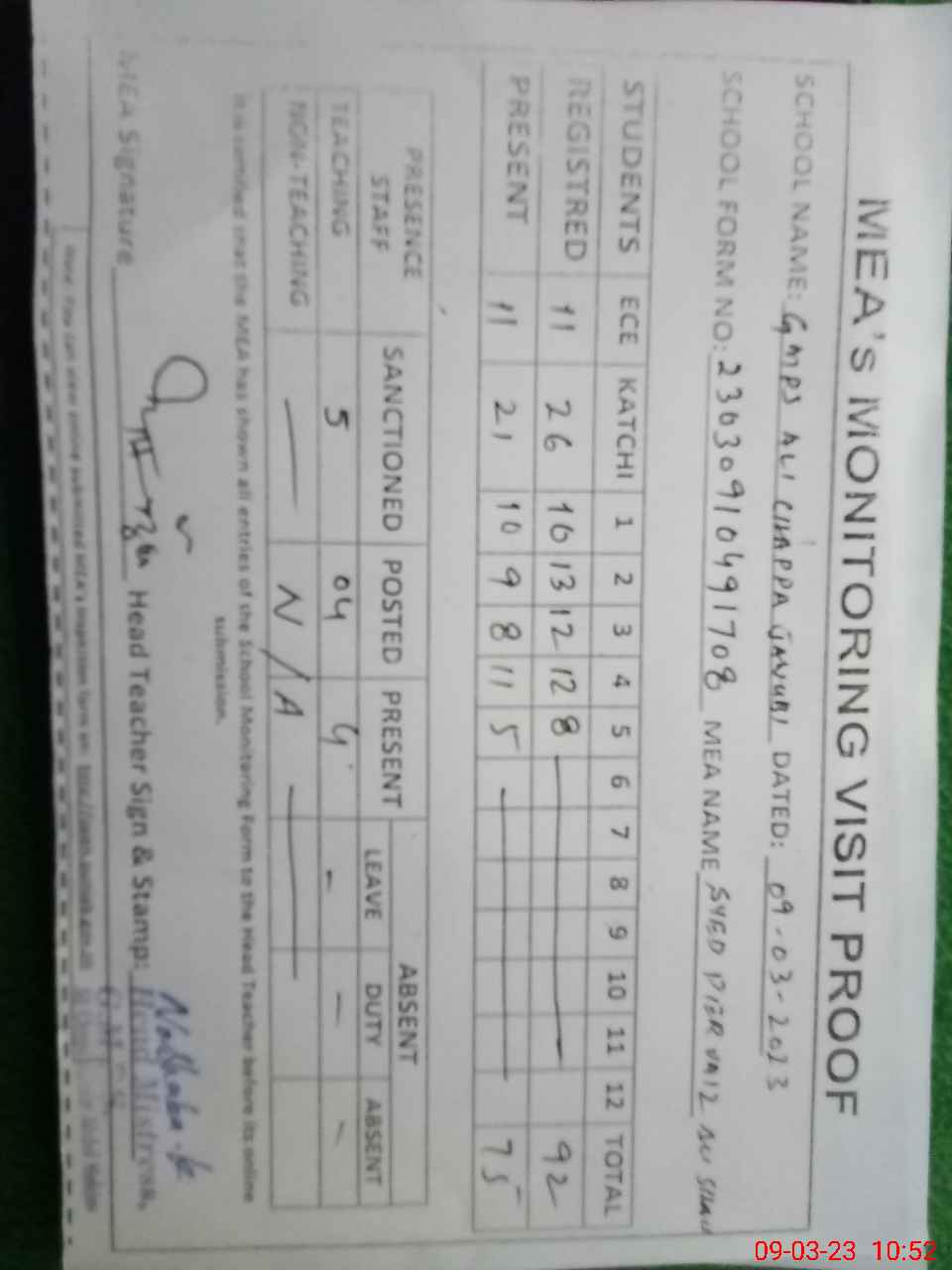 | EMIS Code: 36410595 | Name of School: GMPS ALI CHAPPA JANUBI | |||