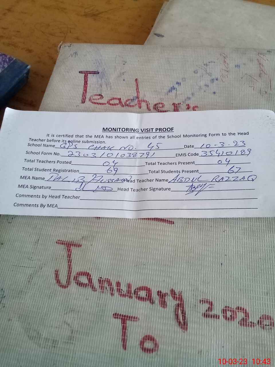 | EMIS Code: 35410189 | Name of School: GPS CHAK NO 45 | |||