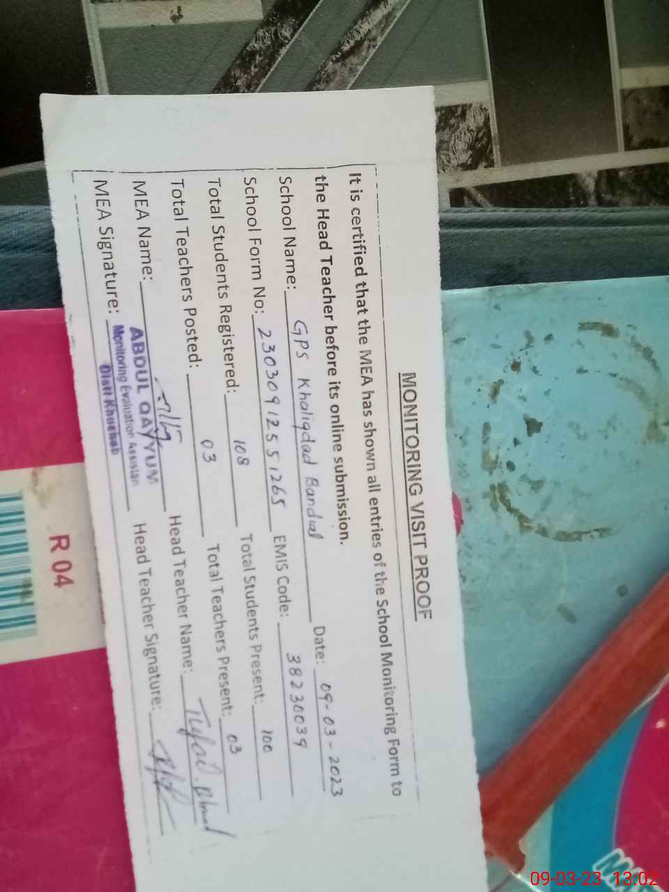 | EMIS Code: 38230039 | Name of School: GPS KHALIQ DAD BANDIAL | |||