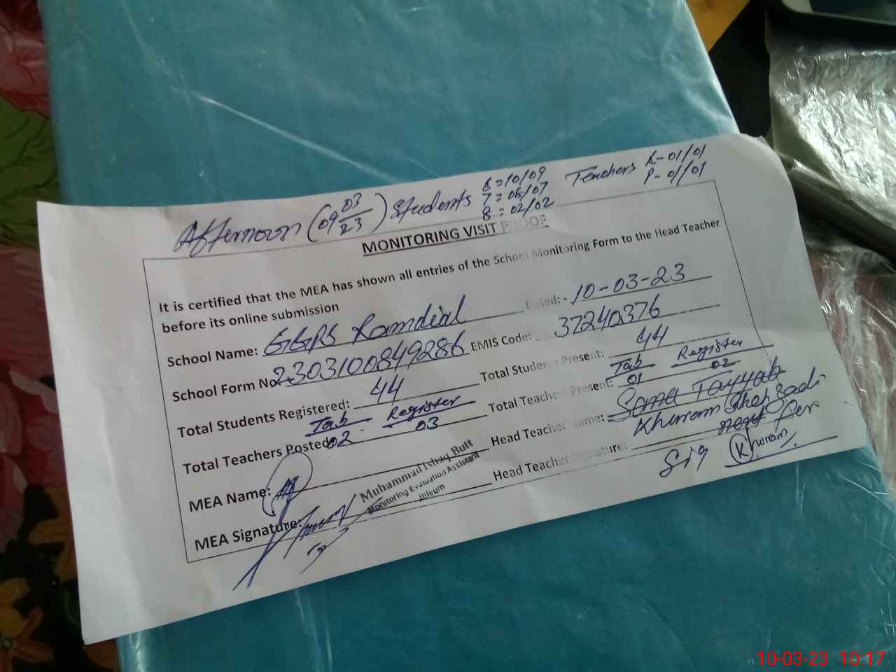 | EMIS Code: 37240376 | Name of School: GGPS RAMDIAL | |||