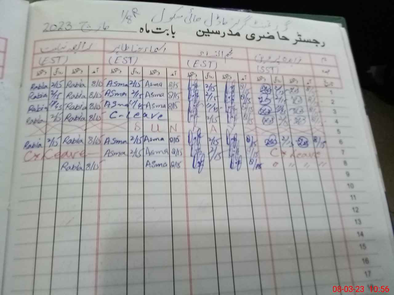 | CNIC | Full Name | Designation | R/C | Absence During Last Calender Month |
