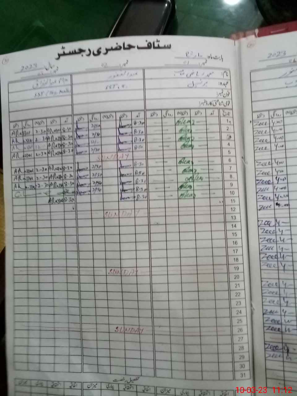 | CNIC | Full Name | Designation | R/C | Absence During Last Calender Month |