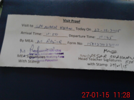 | Attendance Register | Head Teacher | MEA with School | Visit Proof |
