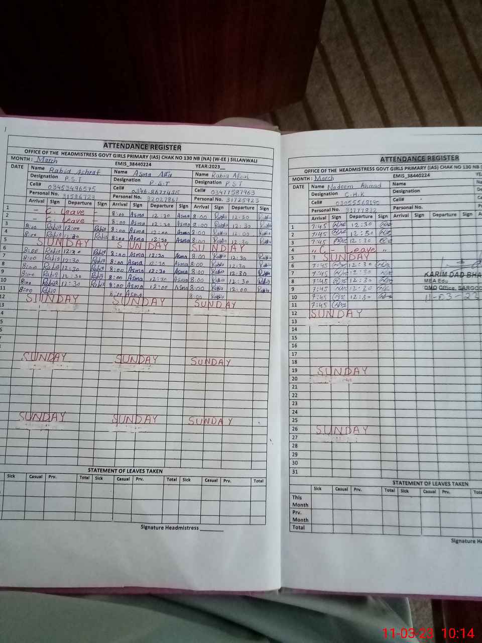 | Name: Re**** Ba**** Designation: (School Headmaster's/Headmistress's) PST Phone/Cell Number: 03**** |