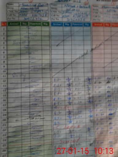 | CNIC | Full Name | Designation | R/C | Absence During Last Calender Month |