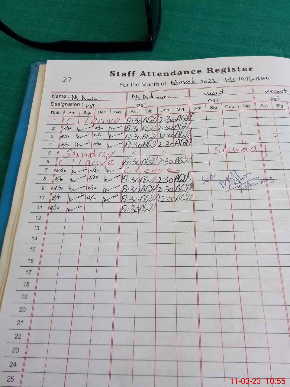 | Leave | Duty | Absent | Maternity | Medical | Ex- Pak |