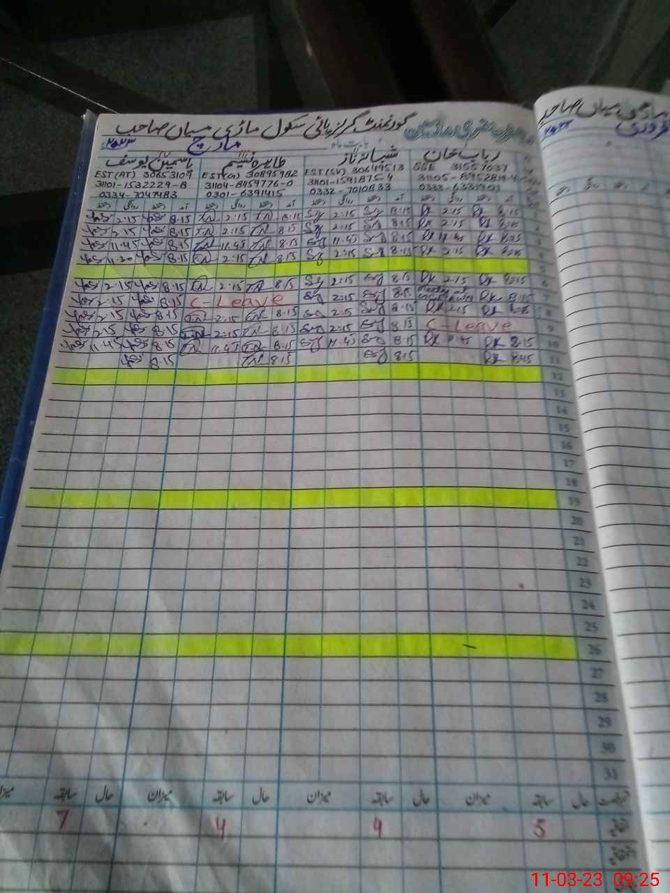 | 31**** | Ri**** Wa**** | Contract | 0 | 0 | 28 | 0 | 0 | 0 | 0 | 0 | 0 | Absent (Un-Authorized) | |