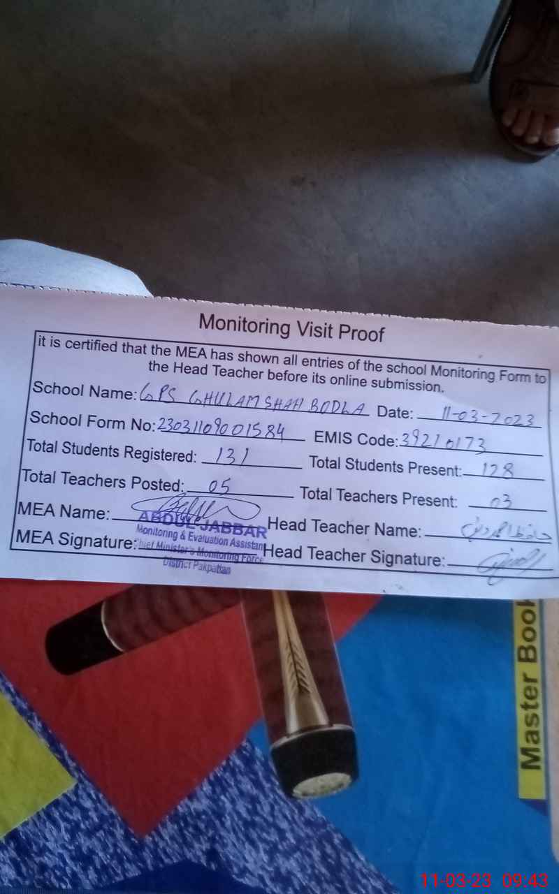 | EMIS Code: 39210173 | Name of School: GPS GHULAM SHAH BODLA PO PAKPATTAN | |||