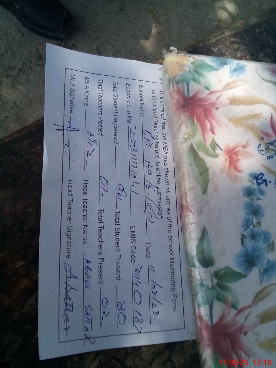 | EMIS Code: 31140187 | Name of School: GPS CHAK 149/6-R (E) | |||