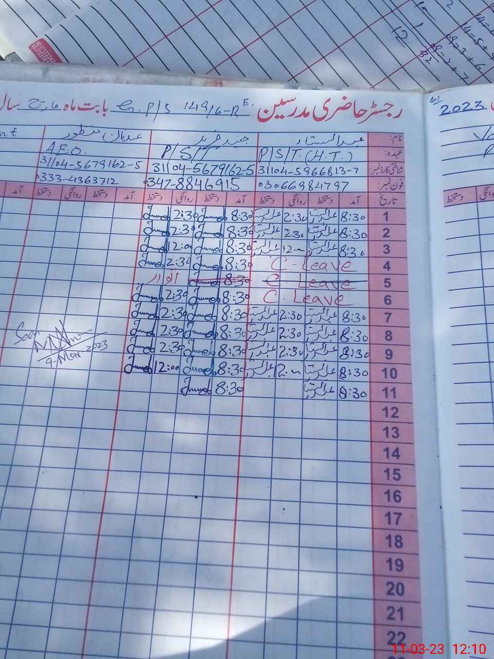 | Name: AB**** SA**** Designation: (School Headmaster's/Headmistress's) PTC Phone/Cell Number: 03**** |