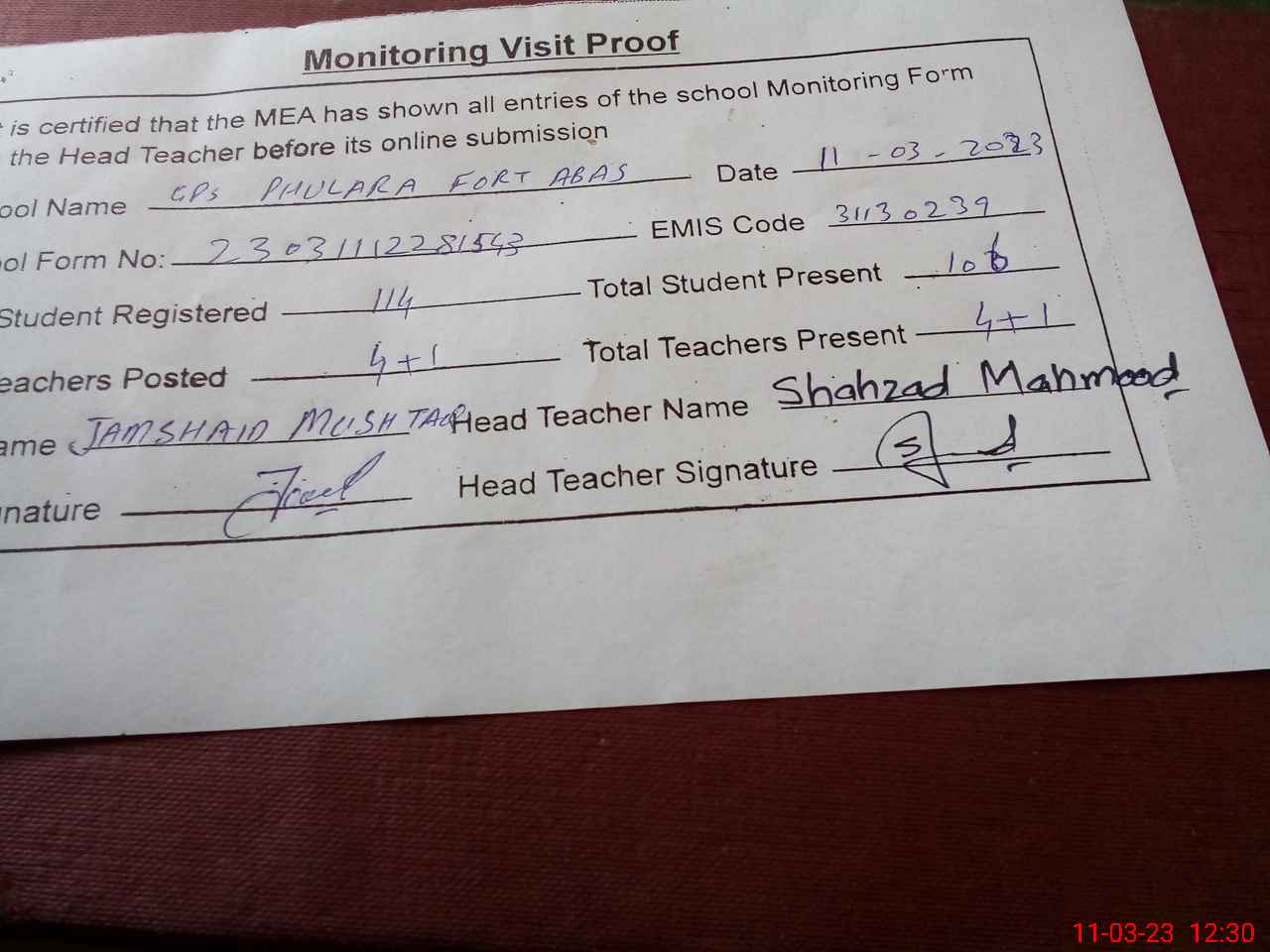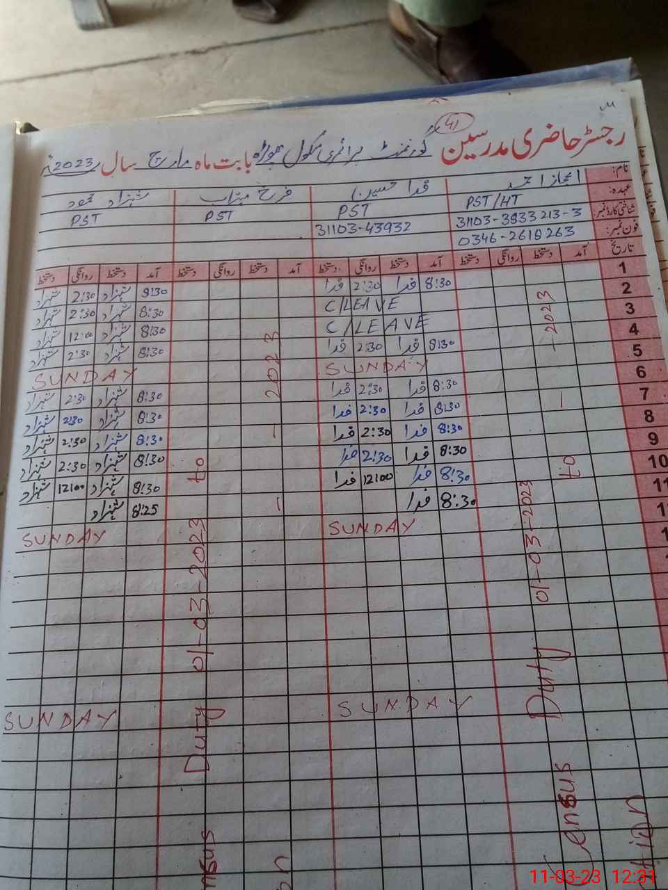 | EMIS Code: 31130239 | Name of School: GPS PHULRA FORT ABBAS | |||