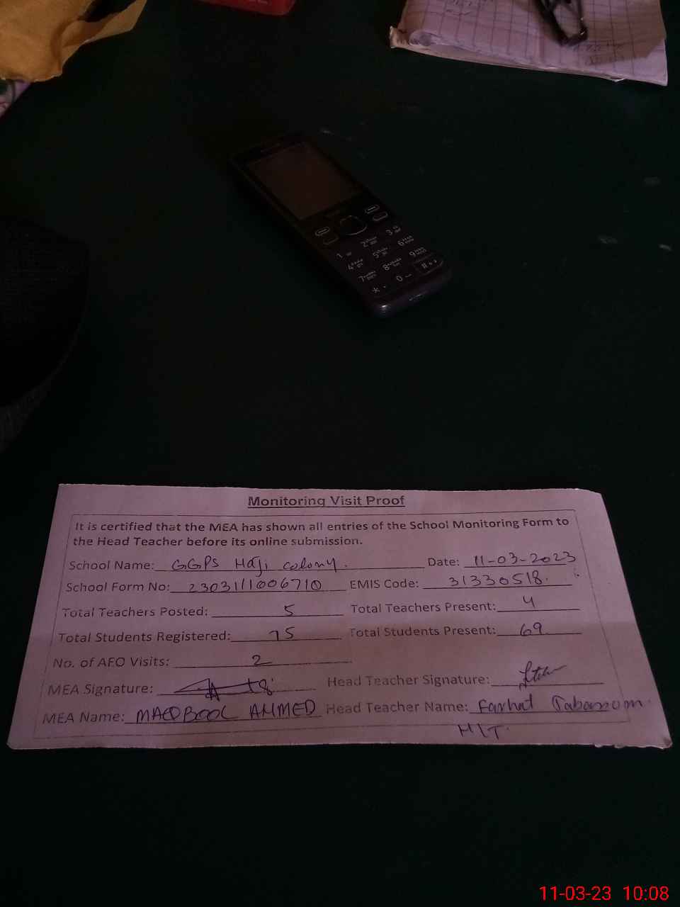 | EMIS Code: 31330518 | Name of School: GGPS HAJI COLONY | |||