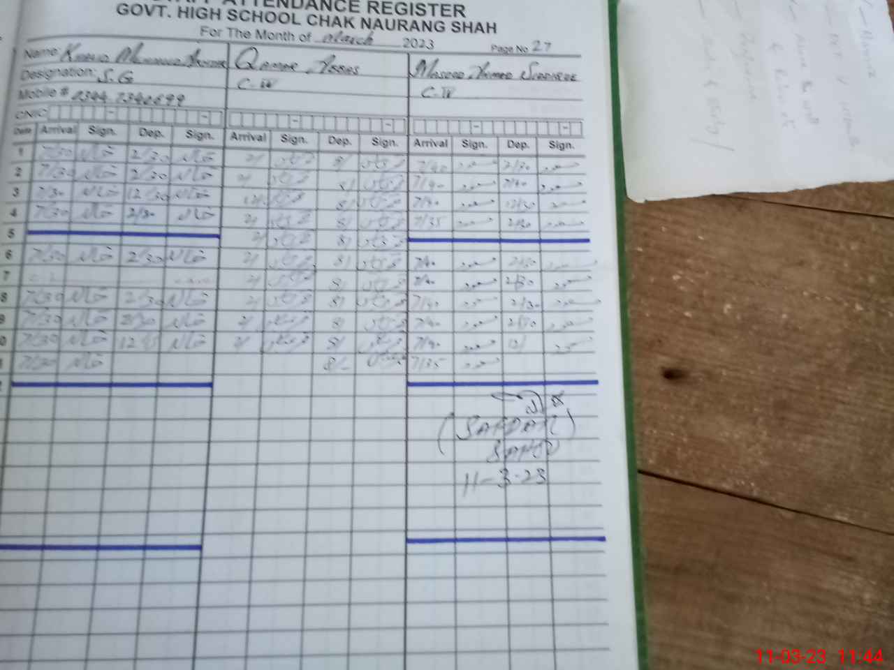 | Name: Gh**** Ya**** Designation: (School Headmaster's/Headmistress's) Head Phone/Cell Number: 03**** |