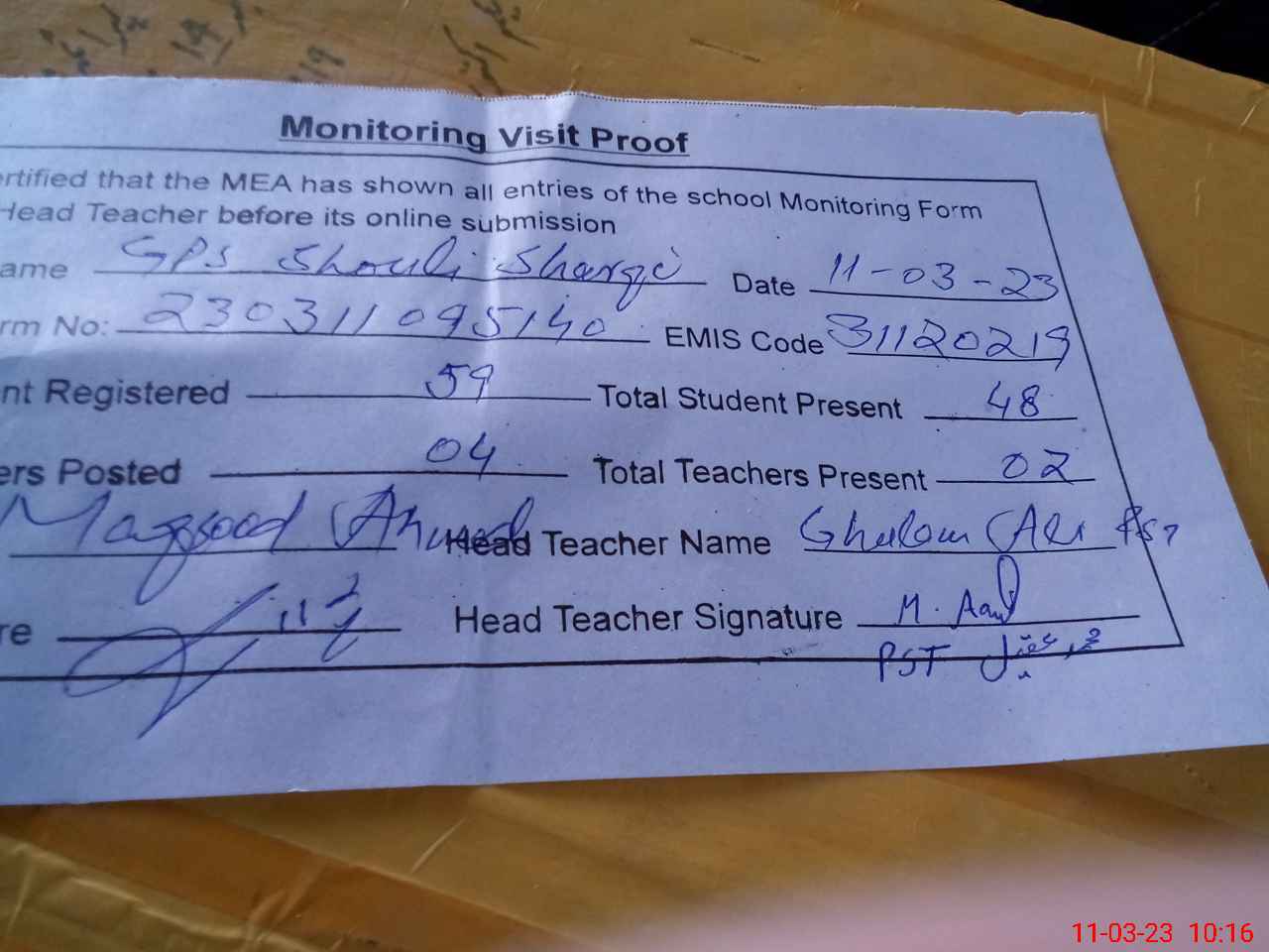 | EMIS Code: 31120219 | Name of School: GPS SHOULI SHARQI | |||