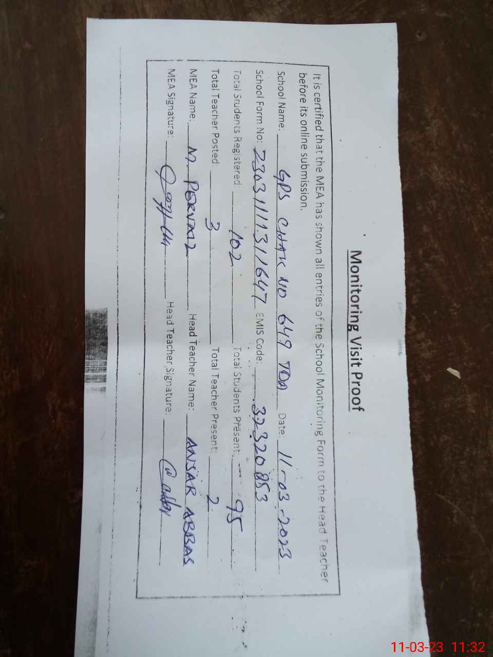 | EMIS Code: 32320853 | Name of School: GPS CHAK NO. 649/TDA | |||