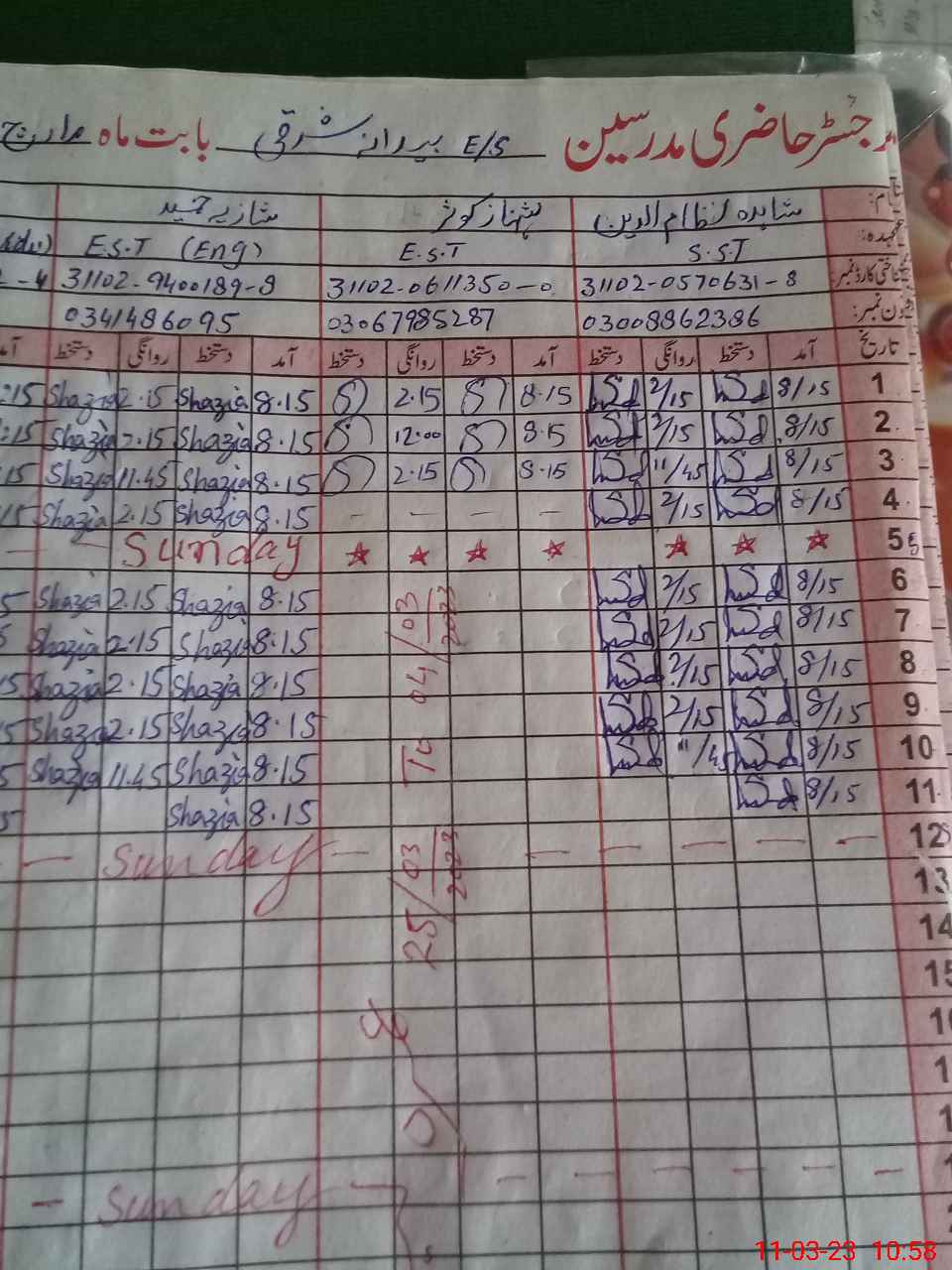 | Name: Sh**** Ni**** Designation: (School Headmaster's/Headmistress's) SST GEN Phone/Cell Number: 03**** |