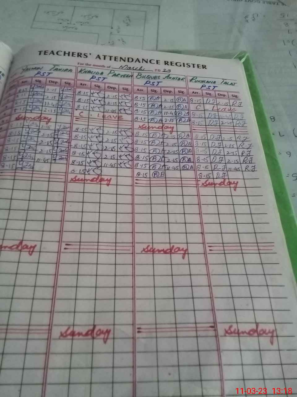 | Leave | Duty | Absent | Maternity | Medical | Ex- Pak |
