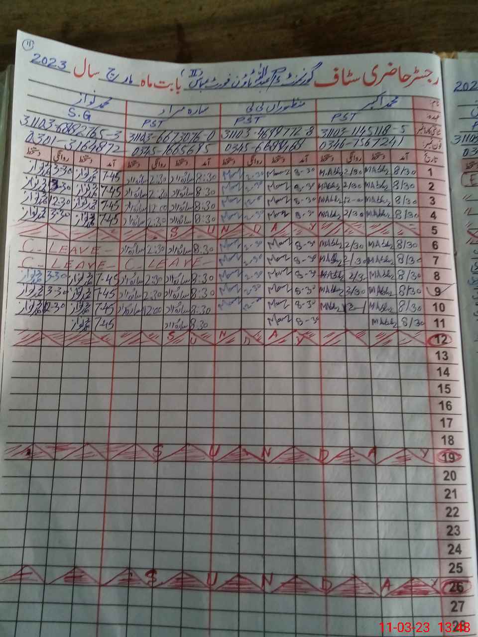 | CNIC | Full Name | Designation | R/C | Absence During Last Calender Month |