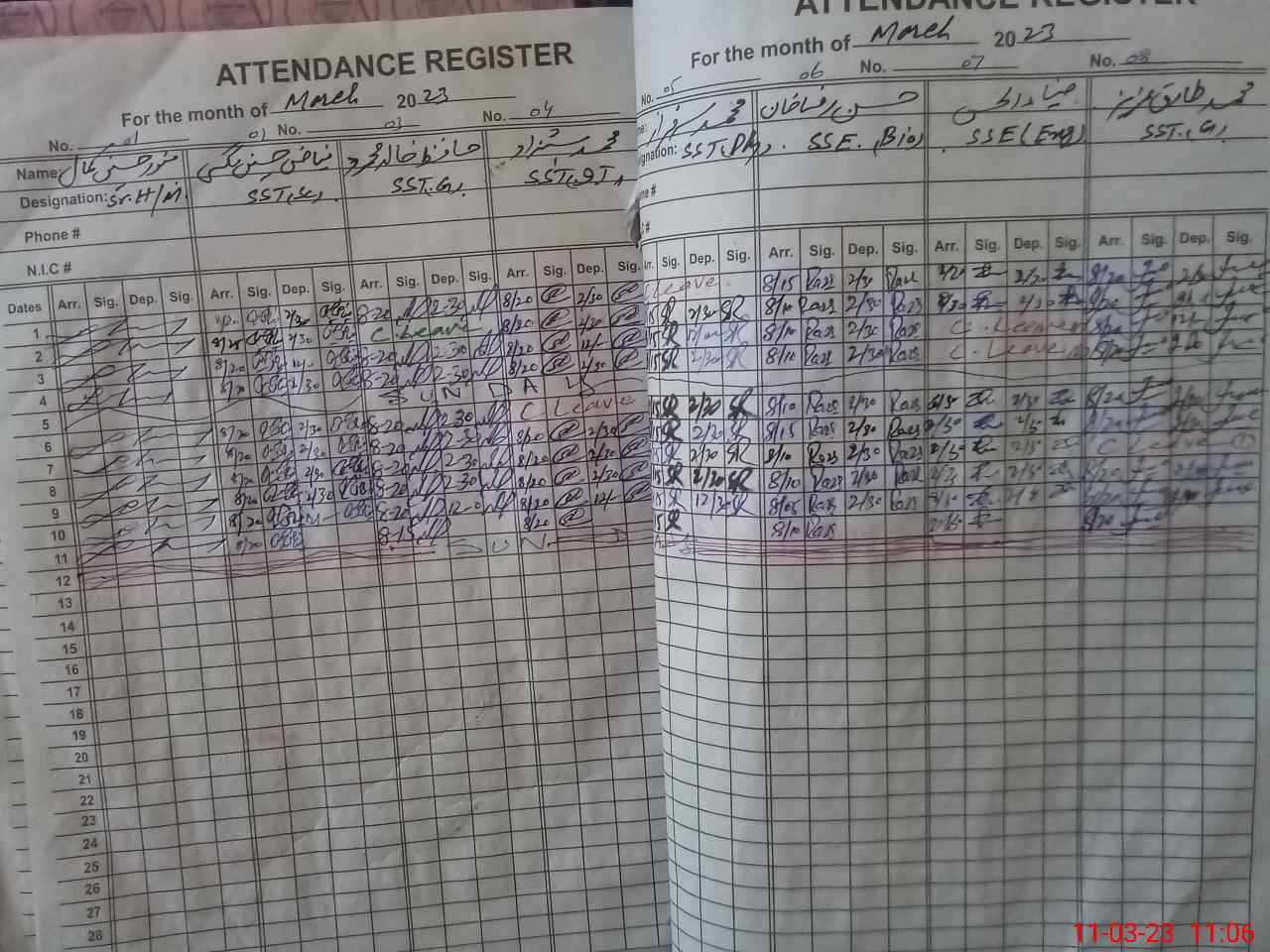 | CNIC | Full Name | Designation | R/C | Absence During Last Calender Month |