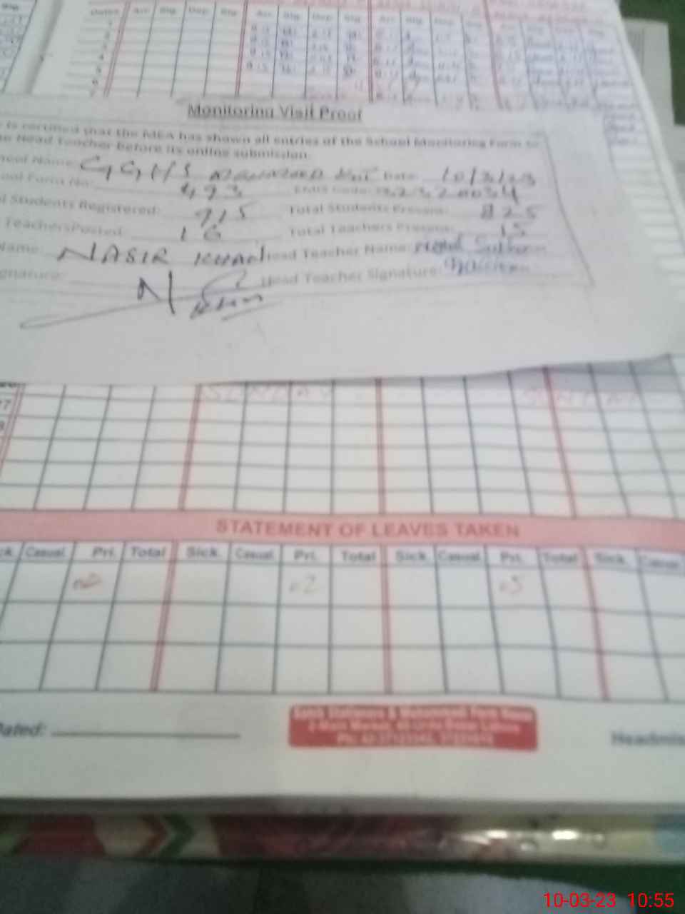 | EMIS Code: 32320034 | Name of School: GGHS MAHMOOD KOT STATION | |||