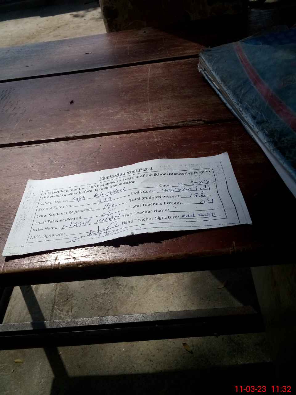 | EMIS Code: 32320104 | Name of School: GPS RAKHAN | |||