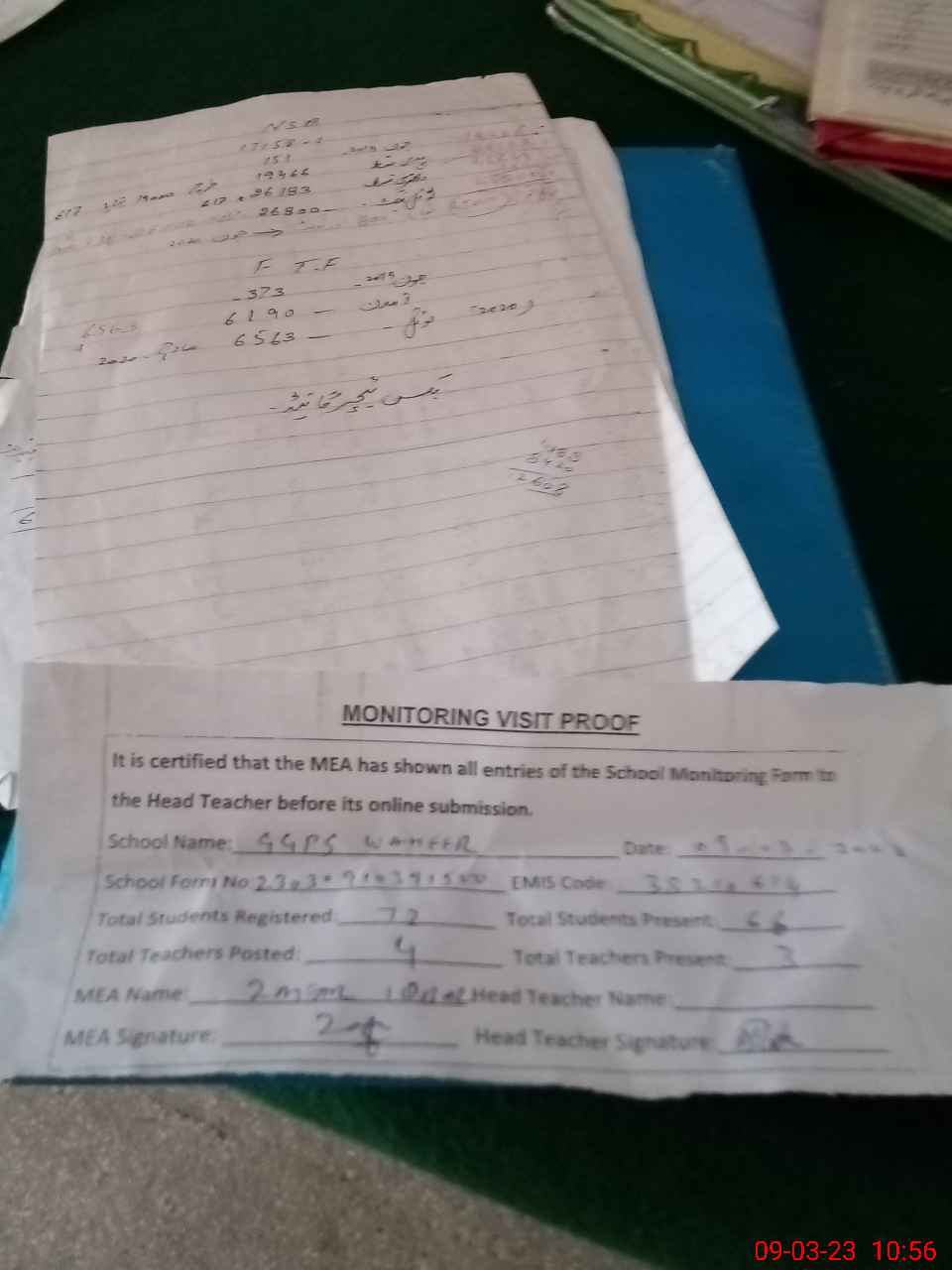 | Attendance Register | Head Teacher | MEA with School | Visit Proof |