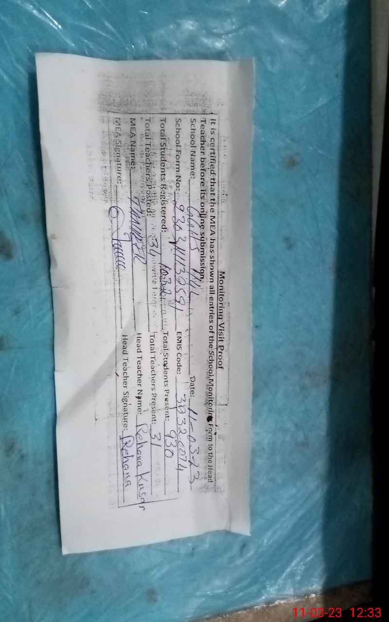 | Attendance Register | Head Teacher | MEA with School | Visit Proof |
