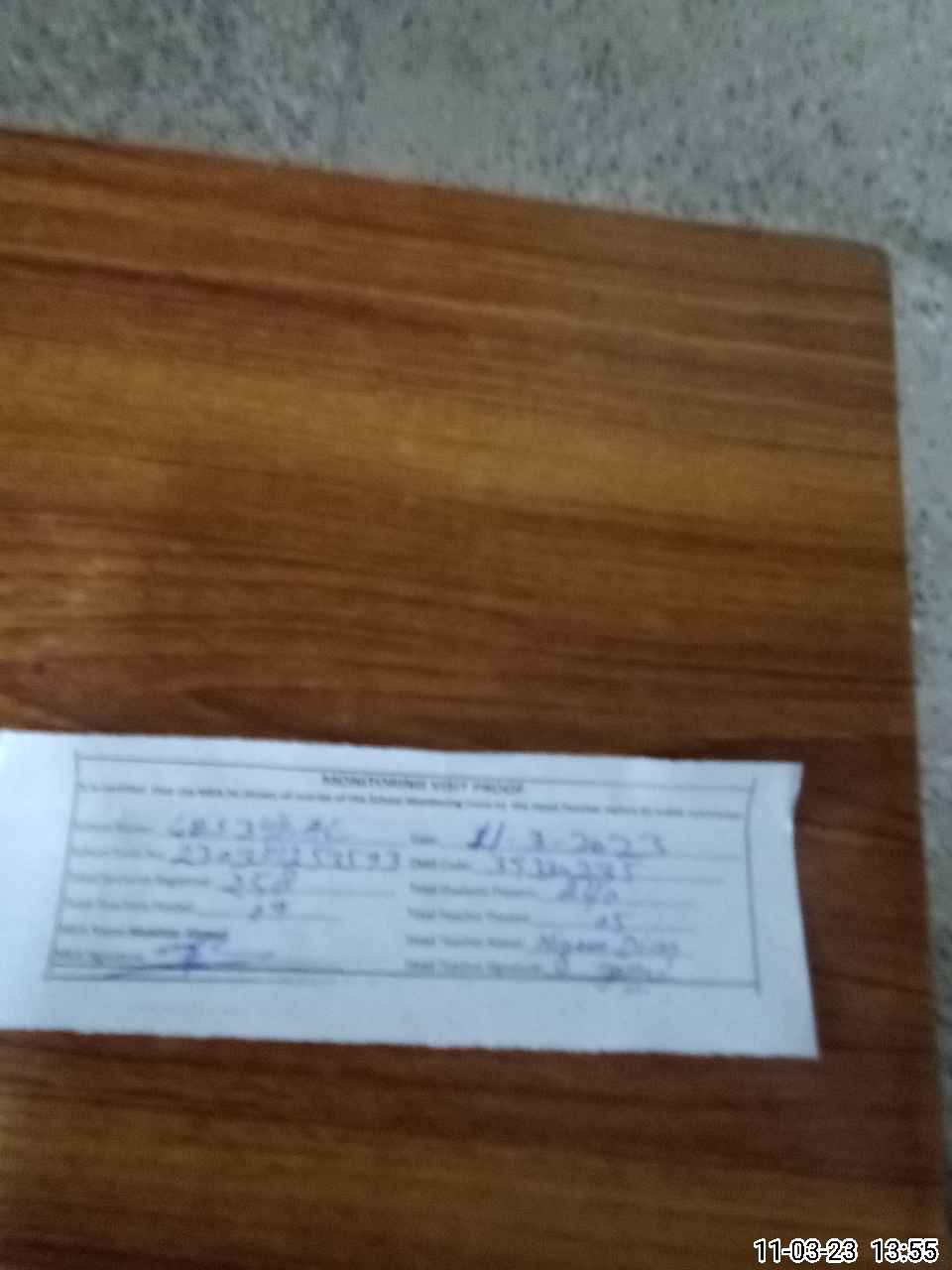 | Attendance Register | Head Teacher | MEA with School | Visit Proof |