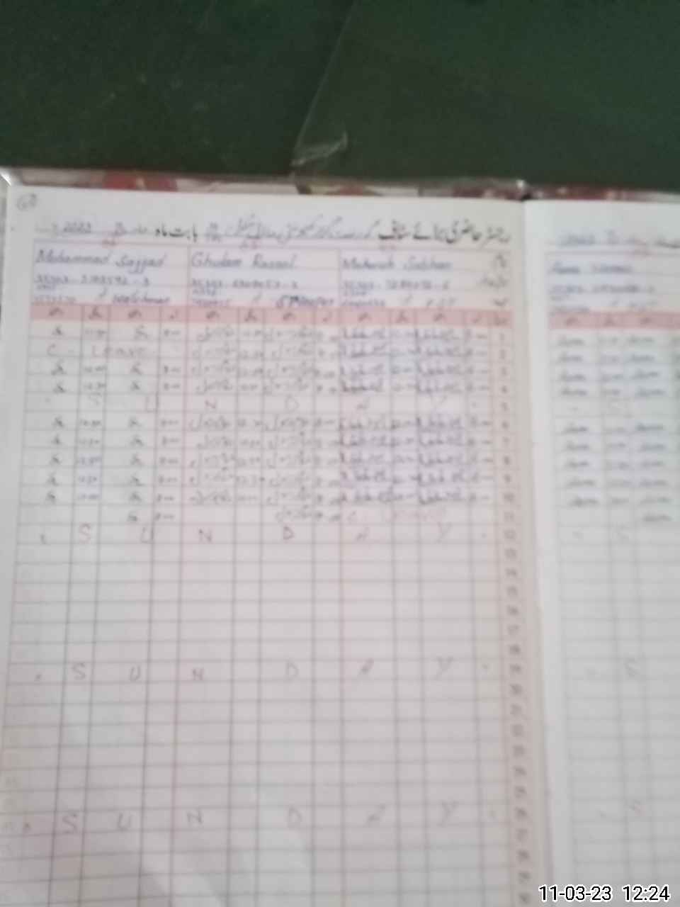 | CNIC | Full Name | Designation | R/C | Absence During Last Calender Month |