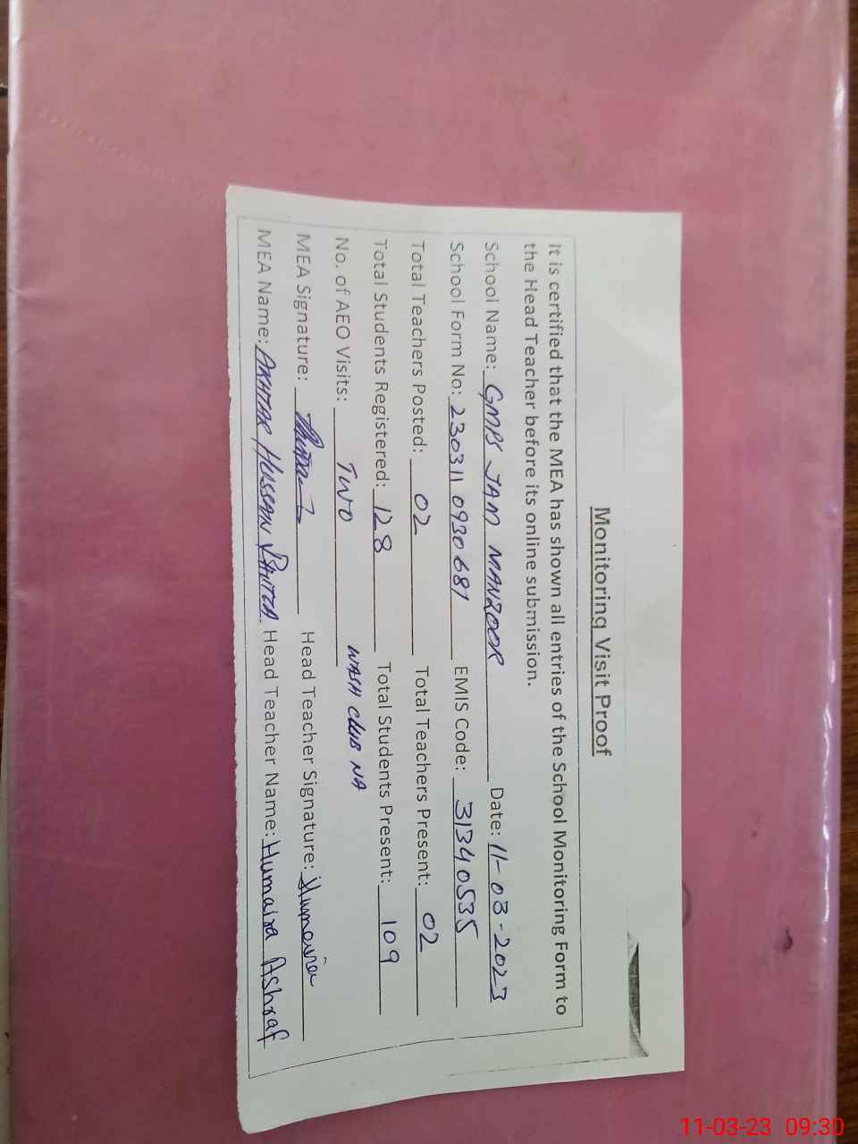 | EMIS Code: 31340535 | Name of School: GMPS JAM MANZOOR | |||