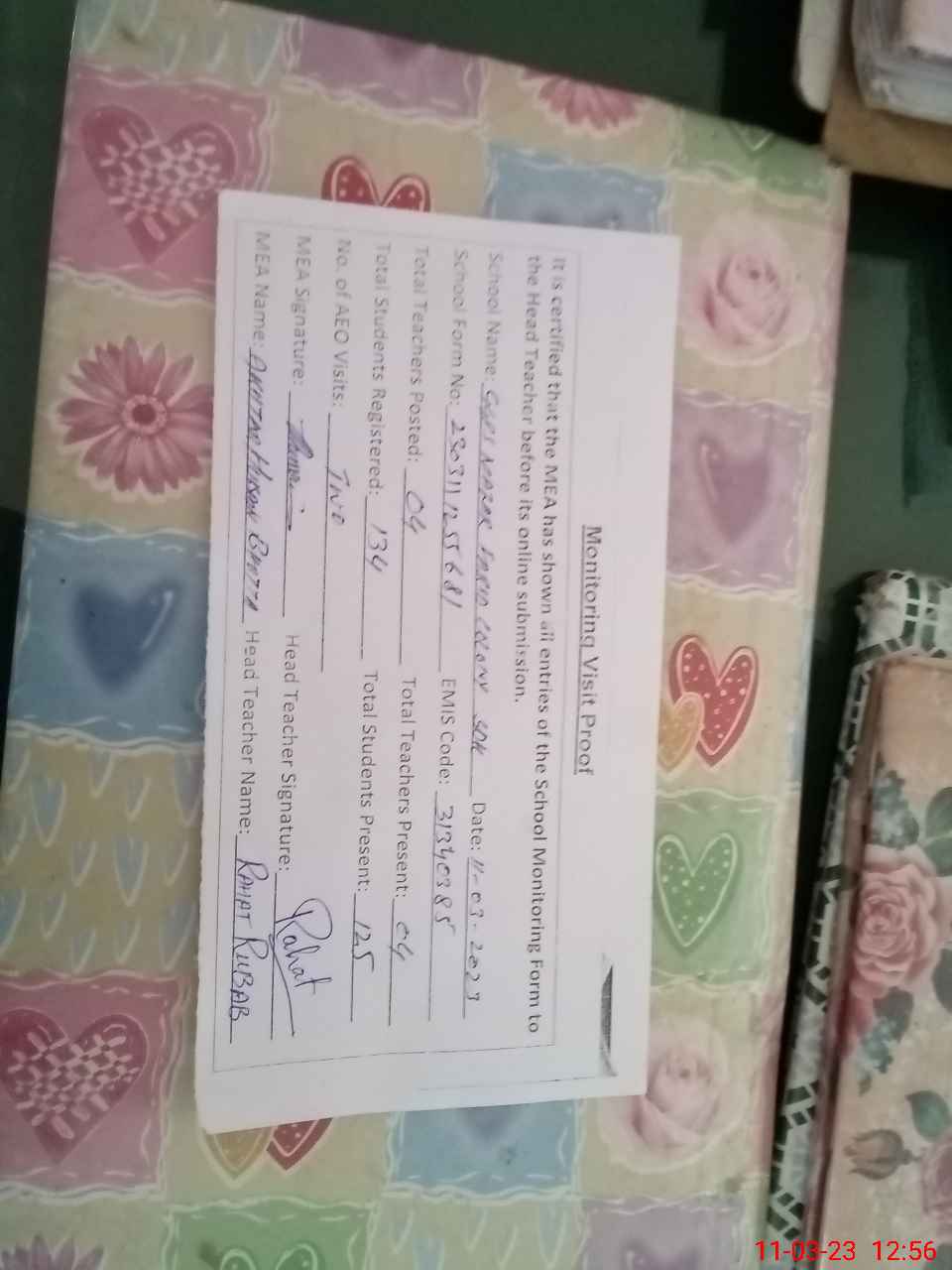 | EMIS Code: 31340385 | Name of School: GGPS MAZHAR FARID COLONY | |||