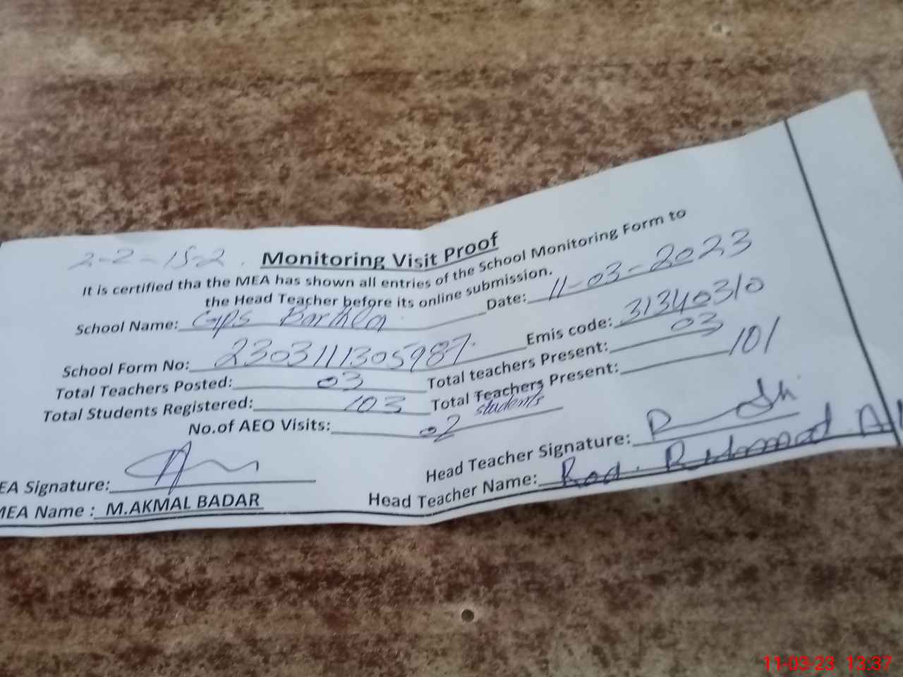 | EMIS Code: 31340310 | Name of School: GPS BIRTHALA | |||